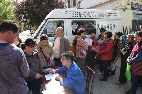 公司服務(wù)人員在該小區(qū)院內(nèi),一邊在流動(dòng)服務(wù)車內(nèi)為用戶辦理居民采暖證,一邊在咨詢服務(wù)臺為用戶提供專業(yè)的供熱咨詢服務(wù),一邊在供熱宣傳展板前講解供熱政策,一邊向用戶發(fā)放供熱常識宣傳頁。整個(gè)服務(wù)現(xiàn)場氣氛熱烈、井然有序,深受小區(qū)居民和用戶的歡迎和贊揚(yáng)。