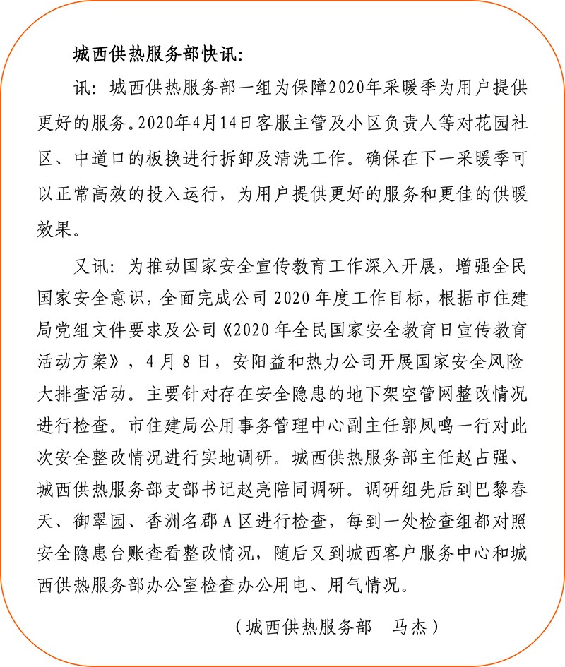 楊總在工作報告中指出,上一年通過公司全體干部職工的克難攻堅、上下合力、團結協(xié)作,全年各項經(jīng)濟效益指標均達到預期目標。2020年,我們要以習近平新時代中國特色社會主義思想為指導,全面貫徹黨的十九大和十九屆二中、三中、四中全會精神,增強“四個意識”、堅定“四個自信”、做到“兩個維護”,強力落實各級關于深化國有企業(yè)改革的政策要求,堅決執(zhí)行市委市政府和市住建局黨組的決策部署,秉承“把以人民為中心作為一切工作的出發(fā)點、落腳點和方法論”的企業(yè)宗旨,堅持“科技引領、規(guī)范管理、優(yōu)良管網(wǎng)、一流服務”的發(fā)展理念,嚴格“目標明確、時限明確、責任明確、結果明確”的工作要求,堅定地擔負起集中供熱建設發(fā)展的重大使命,擔負起實現(xiàn)國有資產(chǎn)保值增值的重大責任,堅定地推進創(chuàng)新變革、效率變革和質量變革,做強做大做優(yōu)國有資本,務實創(chuàng)新、同心同德,為全市實現(xiàn)“一個重返、六個重大”貢獻益和力量。