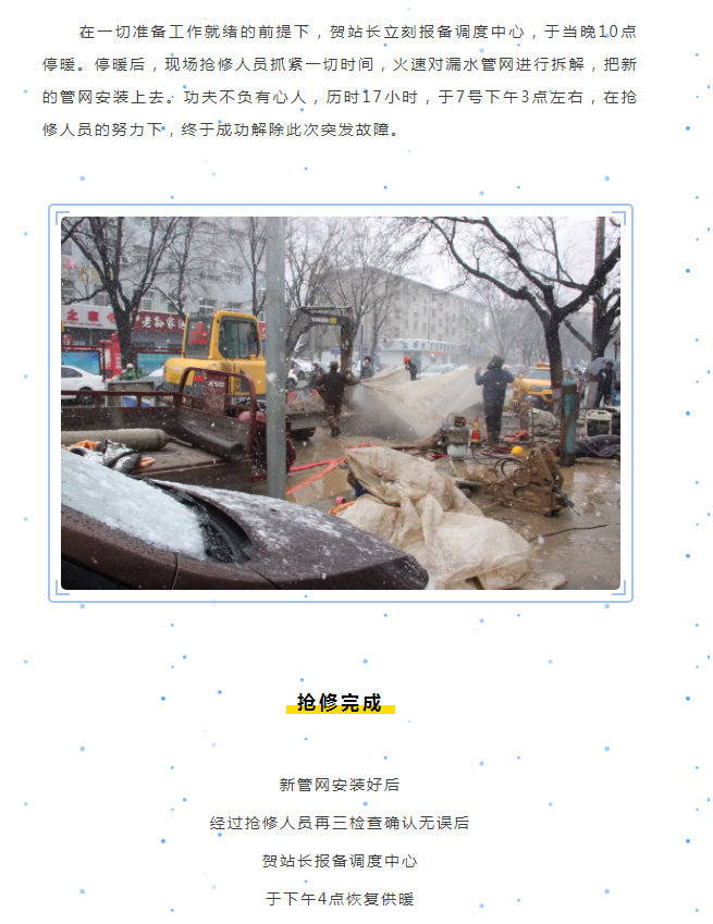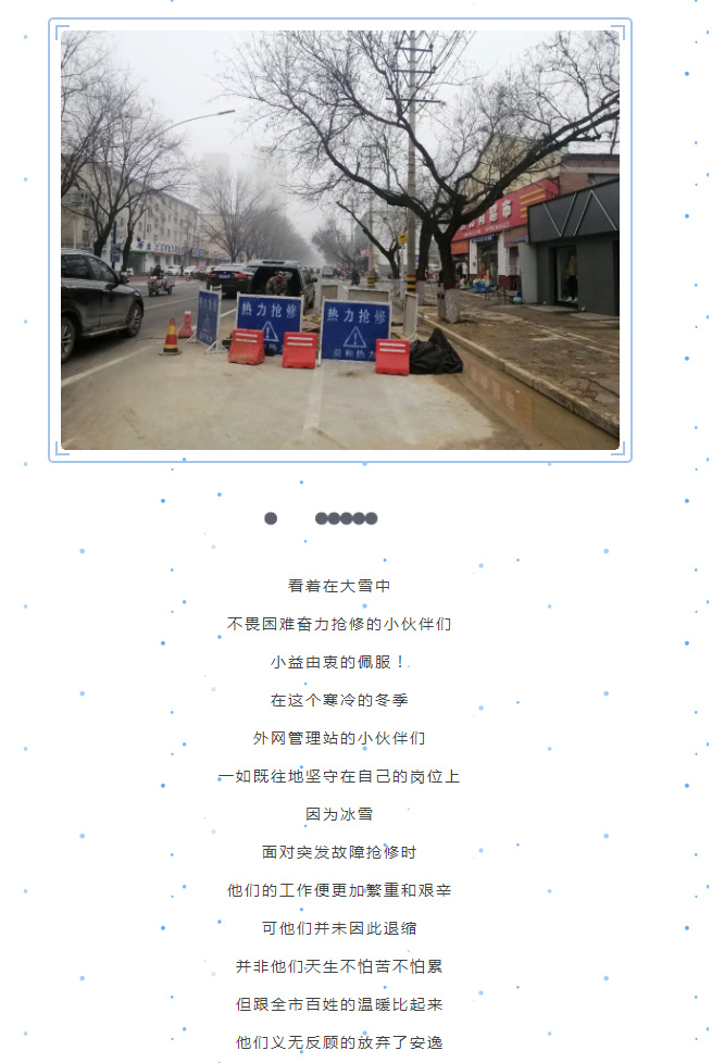 頂風(fēng)冒雪抓搶修,實(shí)干溫暖千萬(wàn)家。